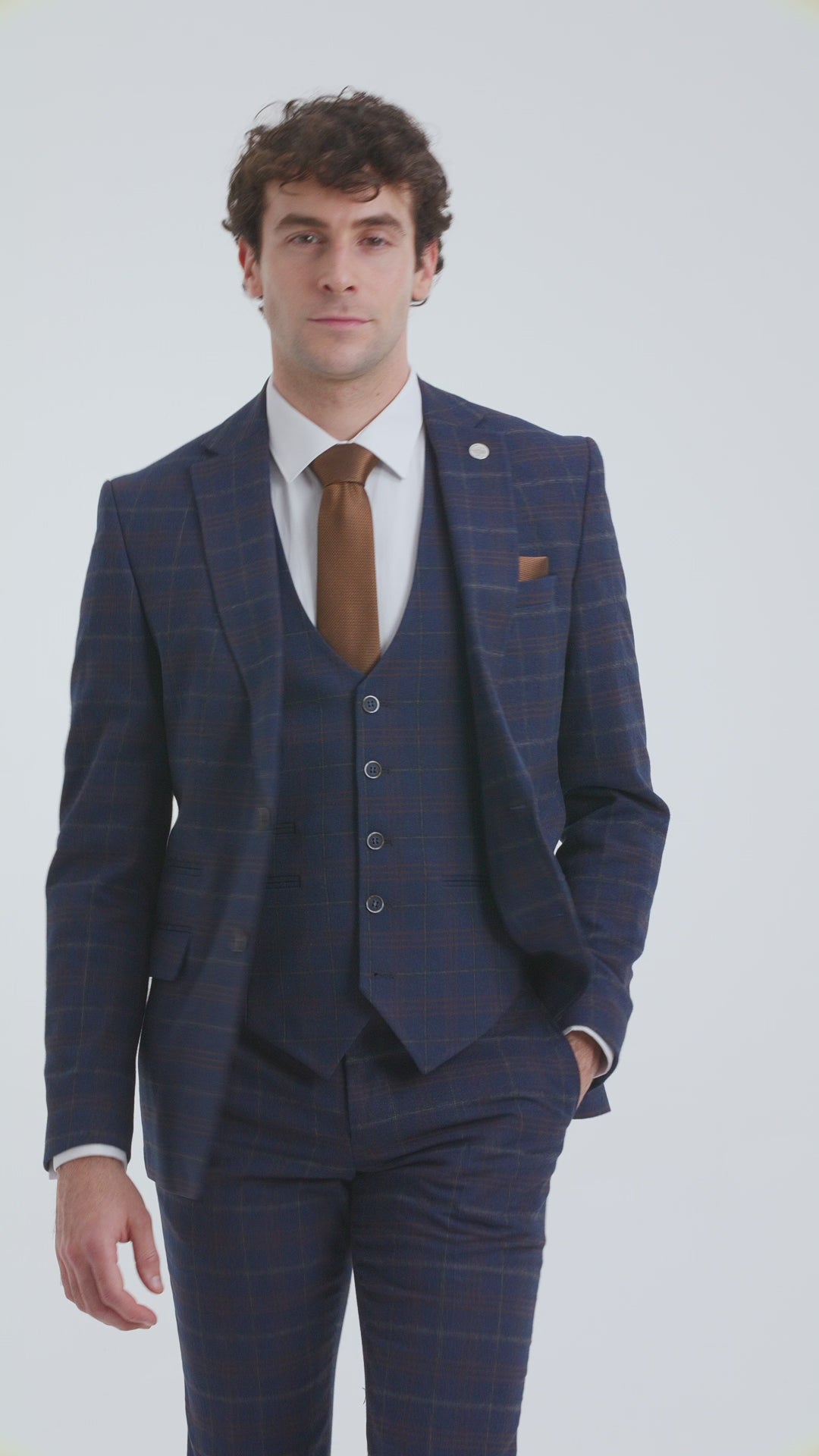 Abito da uomo a 3 pezzi a quadri blu navy - Paul Andrew Kenneth