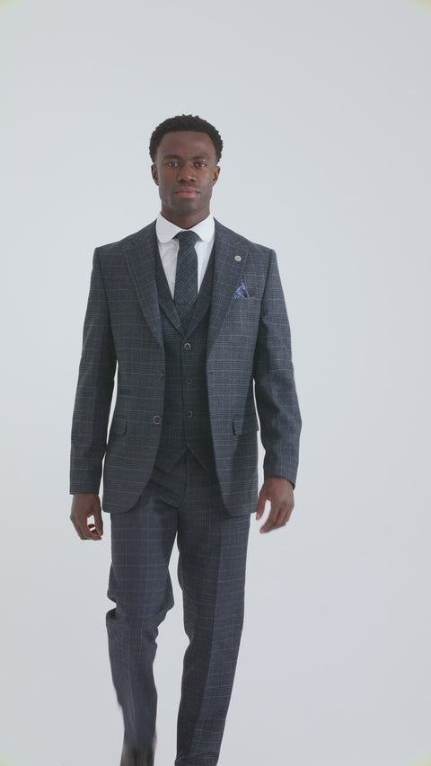 Abito da uomo a 3 pezzi con motivo tartan blu