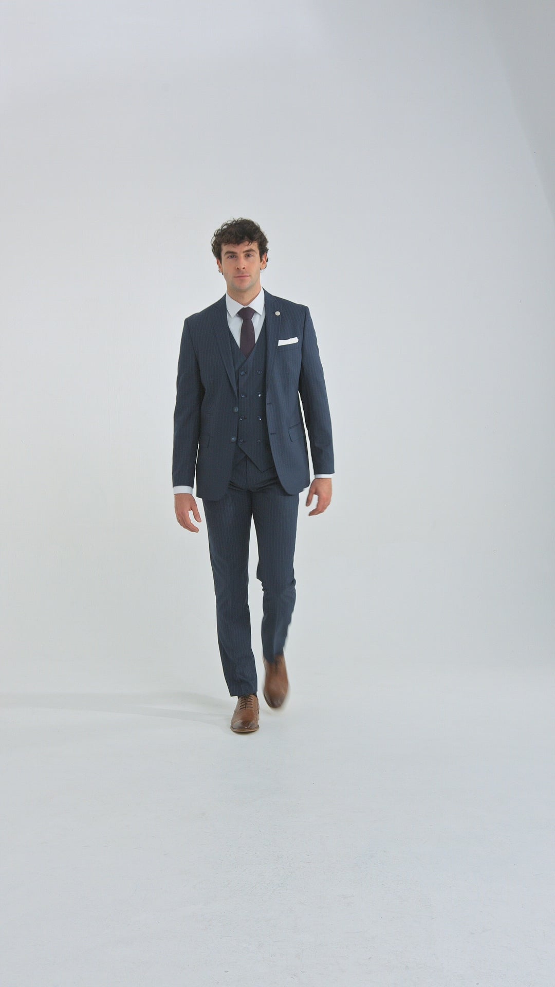 Abito da uomo gessato blu navy 3 pezzi