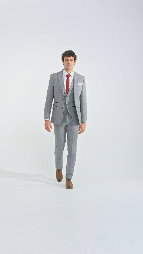 Abito da uomo in tweed a spina di pesce grigio chiaro, 3 pezzi - STZ11