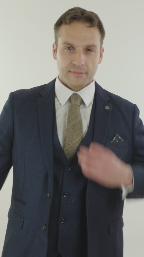 Abito da uomo su misura, 3 pezzi, blu e nero, elegante e formale, da cerimonia