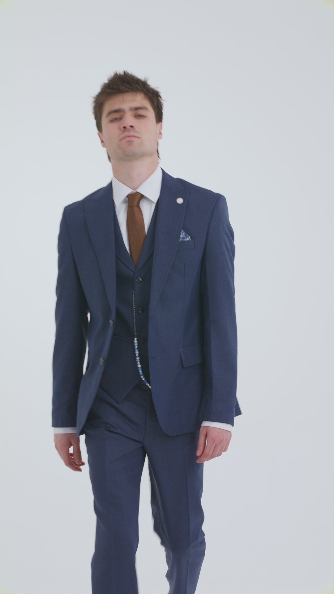 Abito su misura James da uomo, 3 pezzi, blu navy